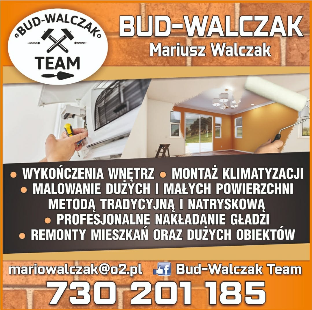 Bud-Walczak Team to firma remontowo-wykończeniowa prowadzona przez Mariusza Walczaka, specjalizująca się w kompleksowych pracach wewnętrznych. Oferuje profesjonalne malowanie małych i dużych powierzchni metodą tradycyjną oraz natryskową, nakładanie gładzi, montaż klimatyzacji oraz remonty mieszkań i większych obiektów. Firma stawia na solidność, dokładność i terminową realizację zleceń. 🛠️🏠